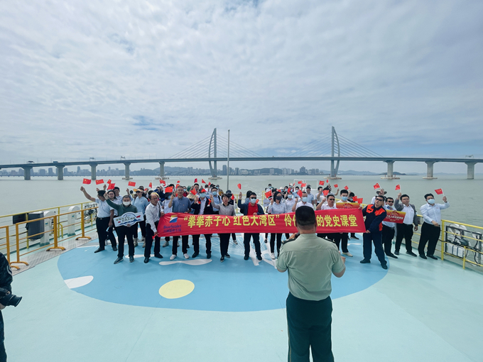 伶仃洋上,海風(fēng)拂面。5月19日下午,珠海港管道燃?xì)獍鍓K黨組織60余名黨員登上高速客輪,在碧波蕩漾的伶仃洋上開展“拳拳赤子心·紅色大灣區(qū)”主題黨日活動(dòng),在游船上欣賞伶仃洋恢宏氣勢(shì)的同時(shí),感受“沉浸式黨史課堂”。