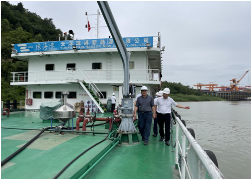 2023年5月23日上午,珠海港集團(tuán)副總經(jīng)理田琛率隊(duì)到云浮珠港新能源有限公司“珠港西江能源01號(hào)”油氣合一躉船式LNG加注站調(diào)研并開展安全檢查工作。